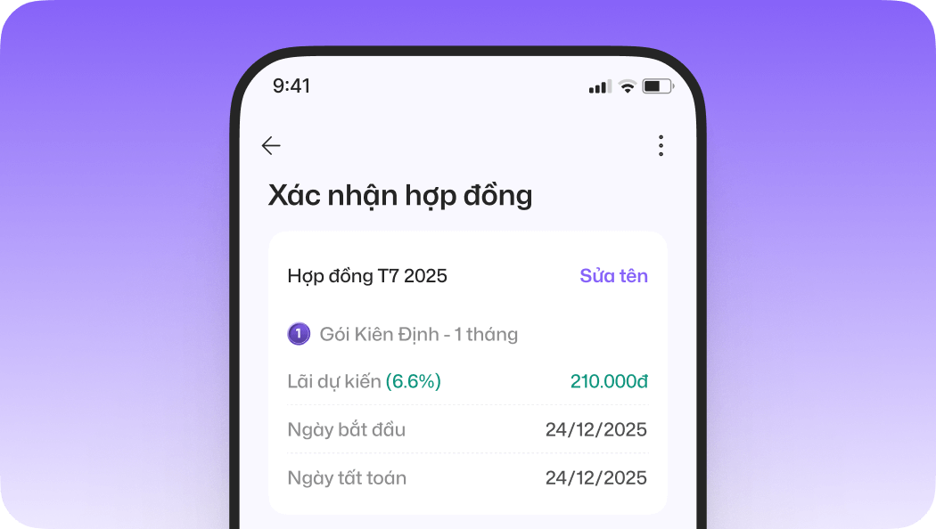• Lãi được tính và cộng mỗi ngày• Xem biến động chi tiết• Lịch sử rõ ràng
